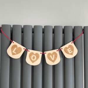 LOVE Bunting / Garland / Banner by Lorex Crafts. Love home décor with our stunning laser engraved reusable bunting! This eye-catching decoration features a cute heart design that brings a touch of elegance to any space. Perfect for indoor use, our bunting is easy to hang and the ideal finishing touch – especially with Valentines Day fast approaching!