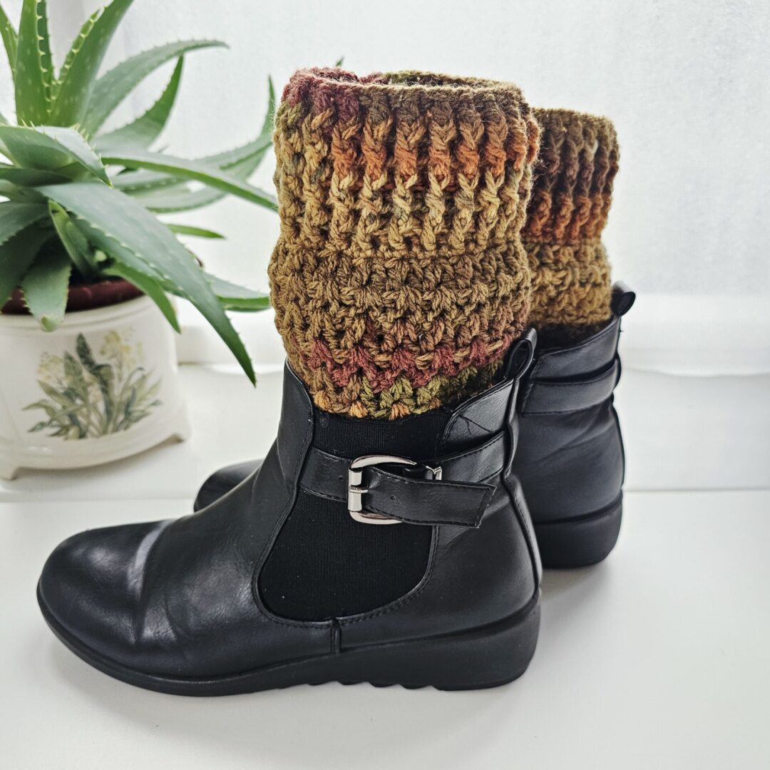 I designed the pattern myself and handcraft them for a truly unique gift or treat for yourself. Handmade with love and a touch of autumnal charm, these crochet boot cuff ankle warmers are the perfect accessory to keep you cosy and stylish this season. Crafted in a rich palette of seasonal colours, they’ll add a pop of warmth and texture to your favourite boots. Simply slip them over your ankles to transform your look and embrace the crisp, colourful days of autumn.