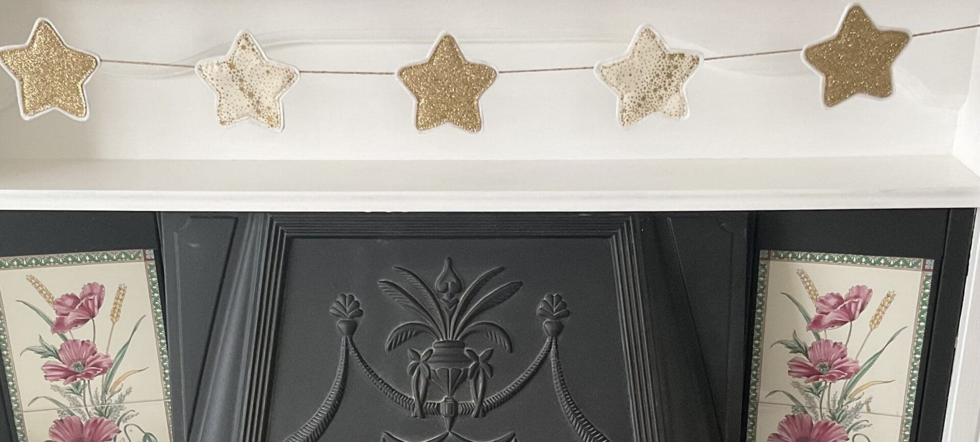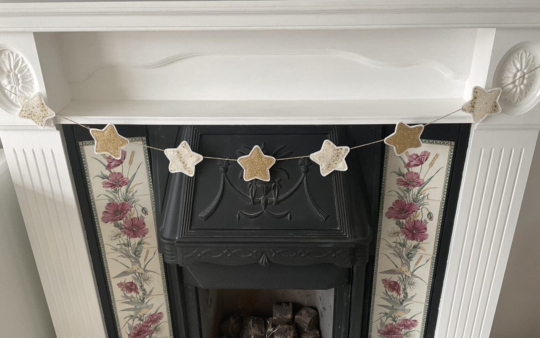This Gold Star Garland consists of five gold stars and 4 cream stars, each star measures approximately 8cm. The length of the garland is 1.60 cm