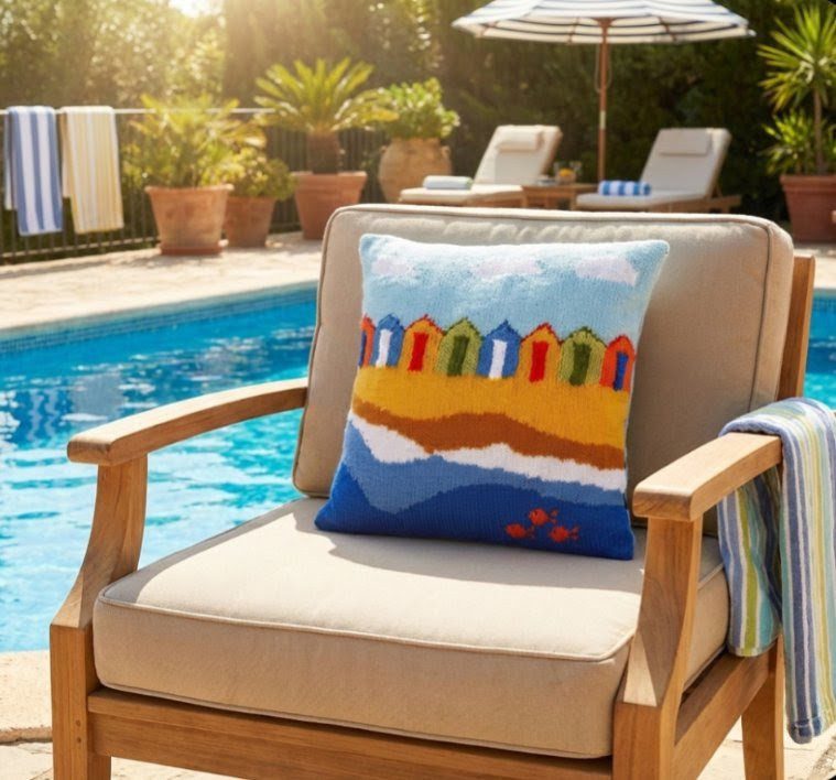 A knitting pattern to remind us of Summer days ! A lovely Beach Huts Cushion.