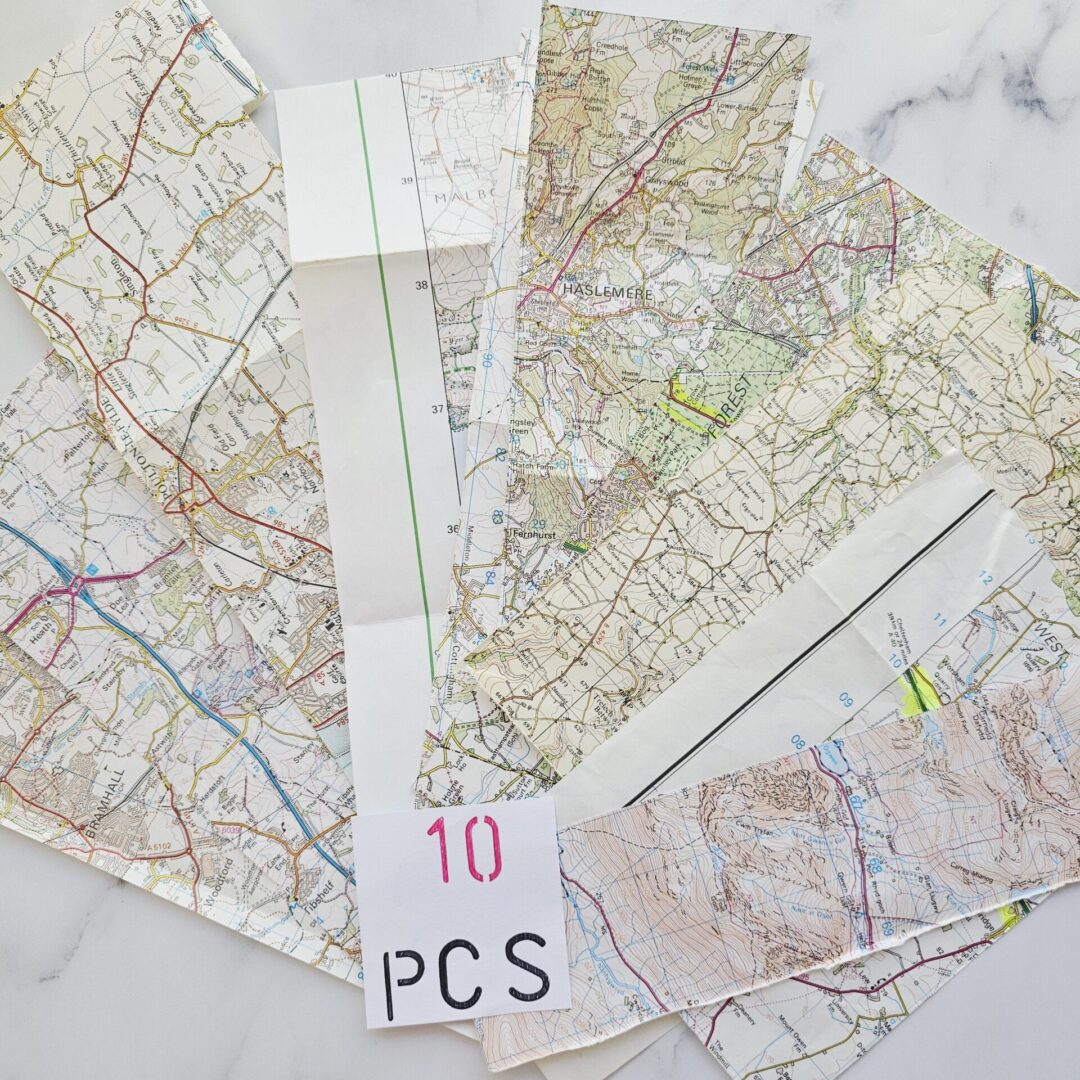 Map Paper Scraps Junk Journal paper and scrapbooking supplies. Random selection of pieces in various sizes, from UK and Europe for crafting, scrapbooking, junk journals, collage & decoupage, Origami, Card Making and other DIY projects.