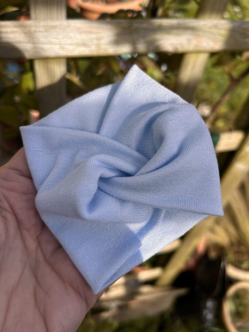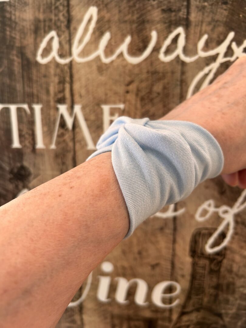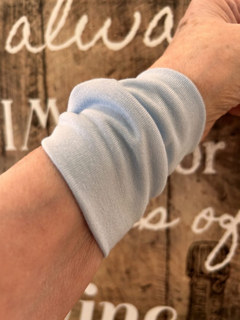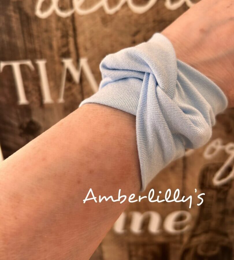 A very pretty and lightweight cuff bracelet in a super soft viscose jersey. Making it an easy to wear for a larger size wrist if needed.